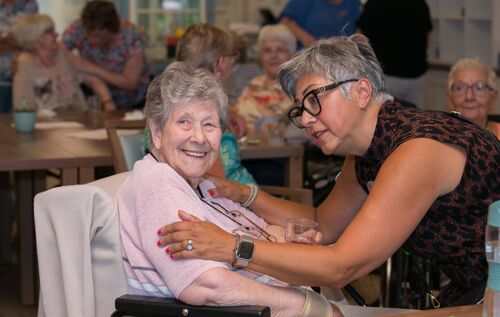 Als het nummer “Utrecht, mijn stad” uit de muziekinstallatie klinkt, barst het gezang echt los. De dertig ouderen die aanwezig zijn bij het muziekevenement in woonzorgcentrum Mariënstein van zorgorganisatie Axion Continu zingen uit volle borst mee, net als de zes vrijwilligers. Er zijn bewoners van het woonzorgcentrum, maar ook van de aanleunwoningen en vanuit de buurt. Dat is precies de bedoeling. AxionContinu wil graag dat buurtbewoners komen. Niet voor niets heeft de zorgorganisatie samen met andere (zorg)organisaties steunsystemen opgericht. Het doel is om buurtcommunity’s op te zetten zodat ouderen langer thuis kunnen blijven wonen.