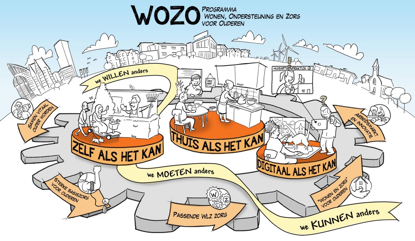 Met het WOZO-programma werkt het ministerie samen aan een samenleving waar (toekomstige) ouderen waardig oud kunnen worden, zelf de regie hebben en met hun netwerk hun leven kunnen leiden. De leefvraag staat centraal en niet de zorgvraag. Het WOZO-programma is tot stand gekomen na intensieve gesprekken en met bijdragen van allerlei organisaties. Het WOZO-programma kent een sterke samenhang met andere trajecten zoals het Integraal Zorgakkoord (IZA) en de Nationale Woon- en Bouwagenda. Voor de Kerst 2022 wordt de Tweede Kamer verder geïnformeerd.