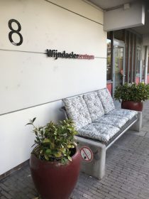 Kijken we dan naar de buitenentree van het Wijndaelercentrum, dan is het boekenruilkastje natuurlijk heel leuk.